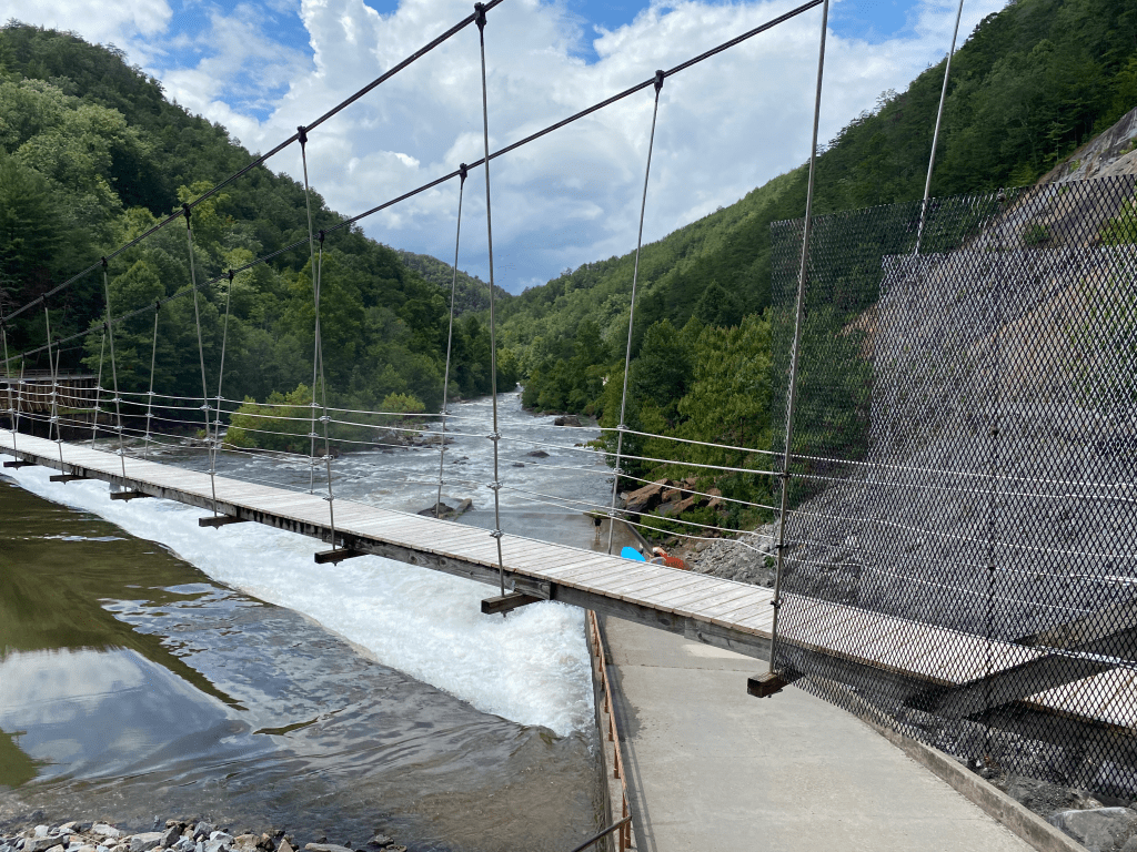 Ocoee Dam No. 2 (from Wikipedia) a hydroelectric dam on the Ocoee River in Tennessee. The dam impounds the Ocoee No. 2 Reservoir and is one of three dams on the Toccoa/Ocoee River owned and operated by the Tennessee Valley Authority. It was completed in 1913. The dam utilizes a wooden flume that carries water from the reservoir down the side of the Ocoee Gorge to the dam’s powerhouse 5 miles downstream.