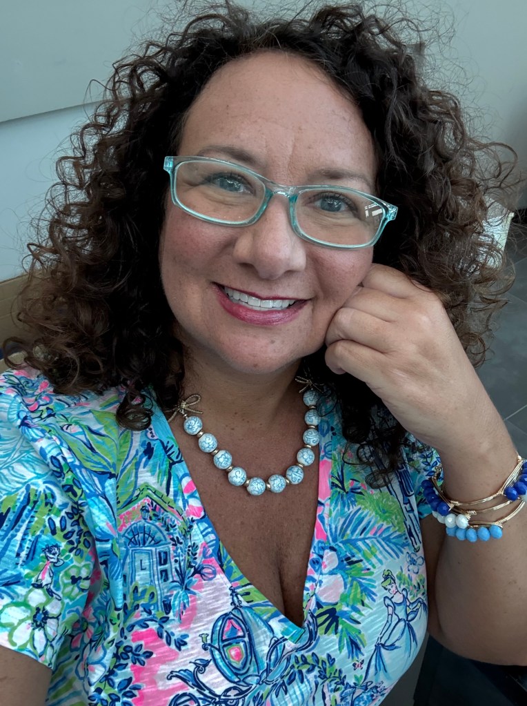 I call this look “sporty Cinderella”. :p The top is the Cinderella top by Lily Pulitzer, that I picked up on a visit to Hollywood Studios, at Walt Disney World. The blue skort was purchased at Marshalls, and my tennies are Saucony. Wrist action is three Millie bangles from Bourbon and Boweties, my chinoiserie beaded necklace with gold bow accents is from Canvas Style, and my glasses are from Amazon.