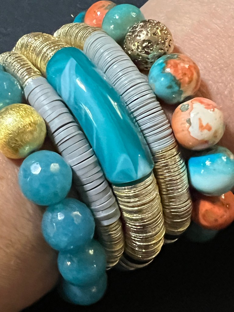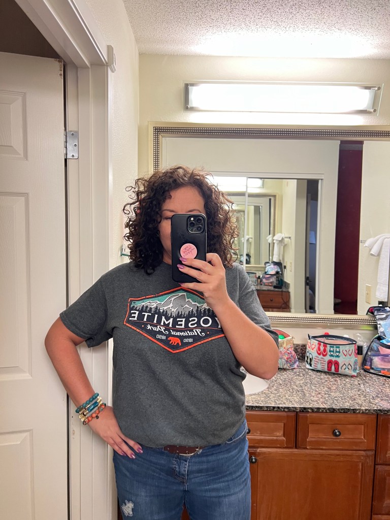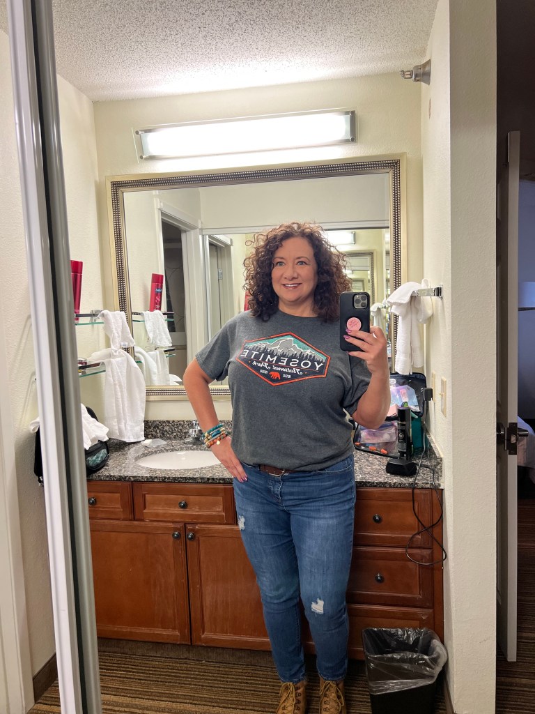 Show set up day calls for casual…and in Rockford, Illinois, in March, it calls for jeans! Brrrrr! I styled my Yosemite tee with my jeans, jean jacket, boots, and a colorful mix of bracelets from Bourbon and Boweties and Allie + Bess. You can see more about the bracelet stack here.