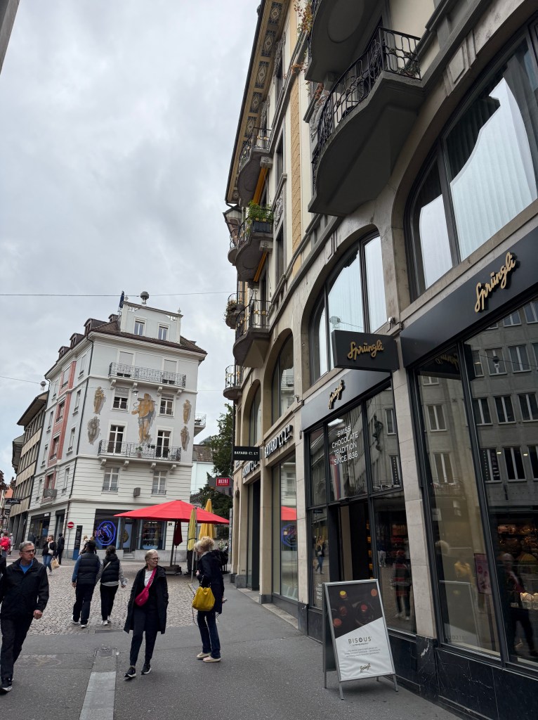 European trip musings #3: After wrangling the rental car into a space in the parking garage, we set off to see some of Lucerne on foot. Being raised in the suburbs, cities, especially old ones, fascinate me. I always love the architecture of the buildings, and Lucerne was my first glimpse of what lay ahead on this trip. This was where we found our first McDonald’s, which was a 2-story walk up, and actually quite busy. We saw the first Swatch store, of which we would see quite a few. I had forgotten that Swatch was Swiss made, and in the age of Apple Watches, really did not realize they were still around. Here’s a little bit about Swatch, from our good friend Wikipedia: Swatch is a Swiss watch company founded in 1983 by Ernst Thomke, Elmar Mock, and Jacques Müller. It is a subsidiary of The Swatch Group. The Swatch product line was developed as a response to the “quartz crisis” of the 1970s and 1980s, in which inexpensive, battery-powered, quartz-regulated watches were competing against more established European watchmakers focused on artisanal craftsmanship producing mostly mechanical watches. The name Swatch is a contraction of “second watch”, its concept of “low-cost, high-tech, artistic and emotional” watches marketed as casual, disposable accessories. ⌚️⌚️⌚️Since I stopped wearing watches several years ago (since I can’t see them without readers! 🤓🤭) I did not purchase a Swatch watch while in Switzerland. It was cool to check them out, as they are a fun accessory, and I’m glad to see they are still around. #swiss #europeancity #lucerne #europeanarchitecture