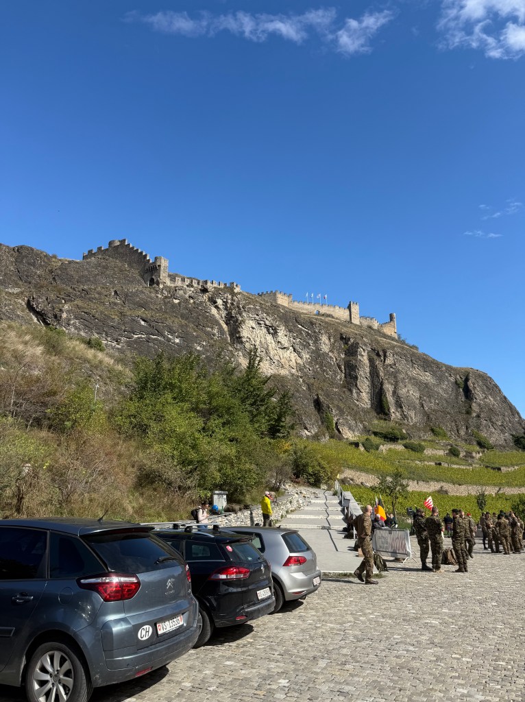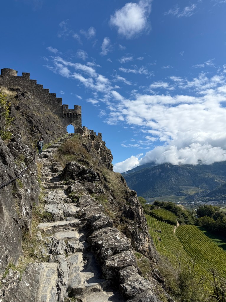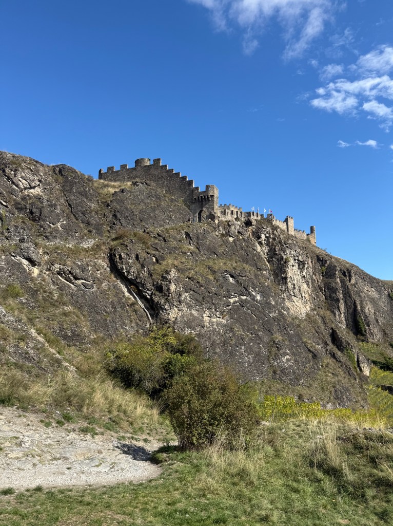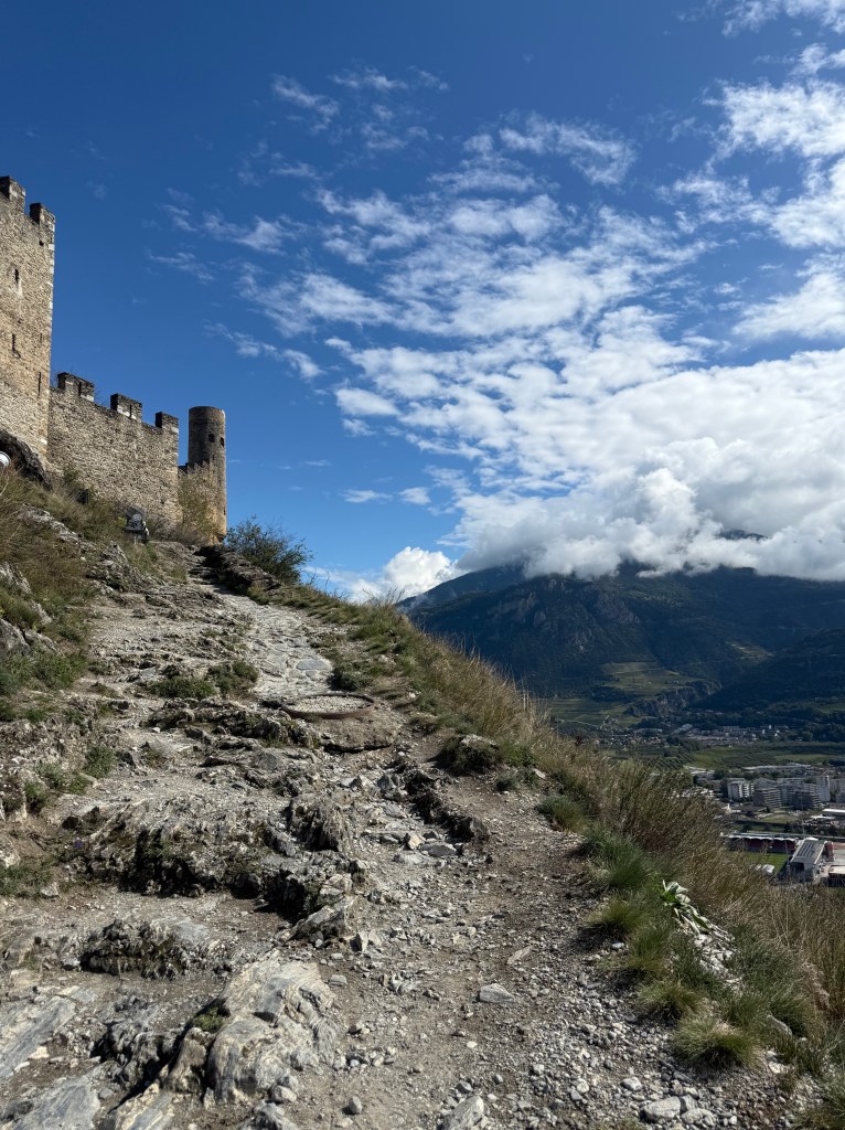 Now for the uphill walk to the castle, once you have passed through Rue Des Chateau. Yes, you see cars in the first pic….they were having some kind of small military ceremony, so they had special permission to park there. The path leading up to the castle is an extremely rocky and narrow in some spots, as you can see from the photos. The views were amazing, and it was a gorgeous day. Just when you reached an outer gate-like structure, you realized you still had quite a ways to go. #tourbillon #sion #castleruins #switzerland