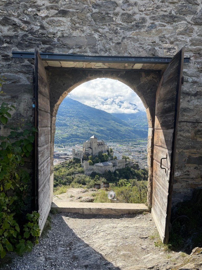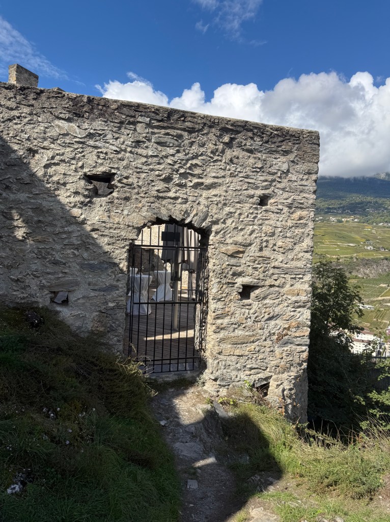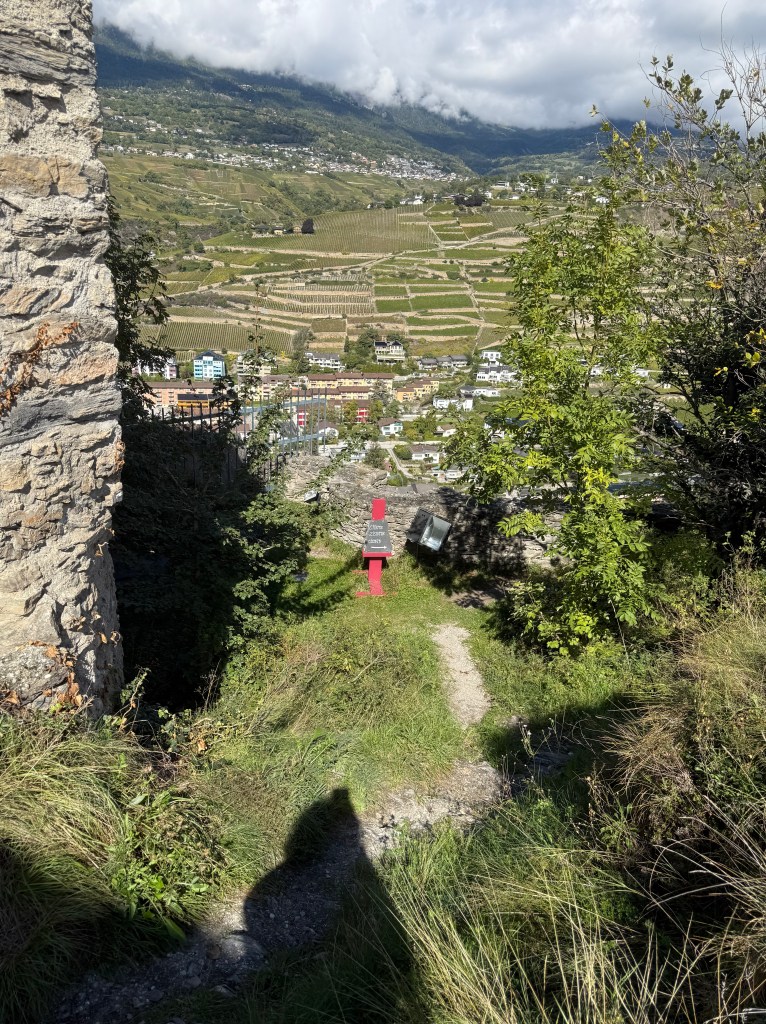 My thoughts as I worked my way up to this castle….I would have to REALLY like you to make this trek to see you on a regular basis! 😝 Definitely glad I took the time to visit, as the views were amazing. Also, I am fascinated by places that have these ancient and historical buildings just sitting among the modern day workings of the city they reside in. Here is what our pal Wikipedia has to say about this castle: “It was built at the end of the 13th century under the direction of Bishop Boniface de Challant. Of a defensive nature and perched on the top of a steep, rocky hill, it served as the residence of the bishops of Sion. The Tourbillon Castle was badly damaged by the conflicts between the bishops and the people of Valais. It was burnt down in 1417 during the Raron affair, a war between the people of Sion and the Raron family. It was rebuilt by Bishop William III of Raron some thirty years later. In 1788 it was completely destroyed by another fire. The stones of the castle were used for some time for construction in the region before the ruins were reinforced in the 19th century to make it a historical monument. The castle is a Swiss heritage site of national significance.