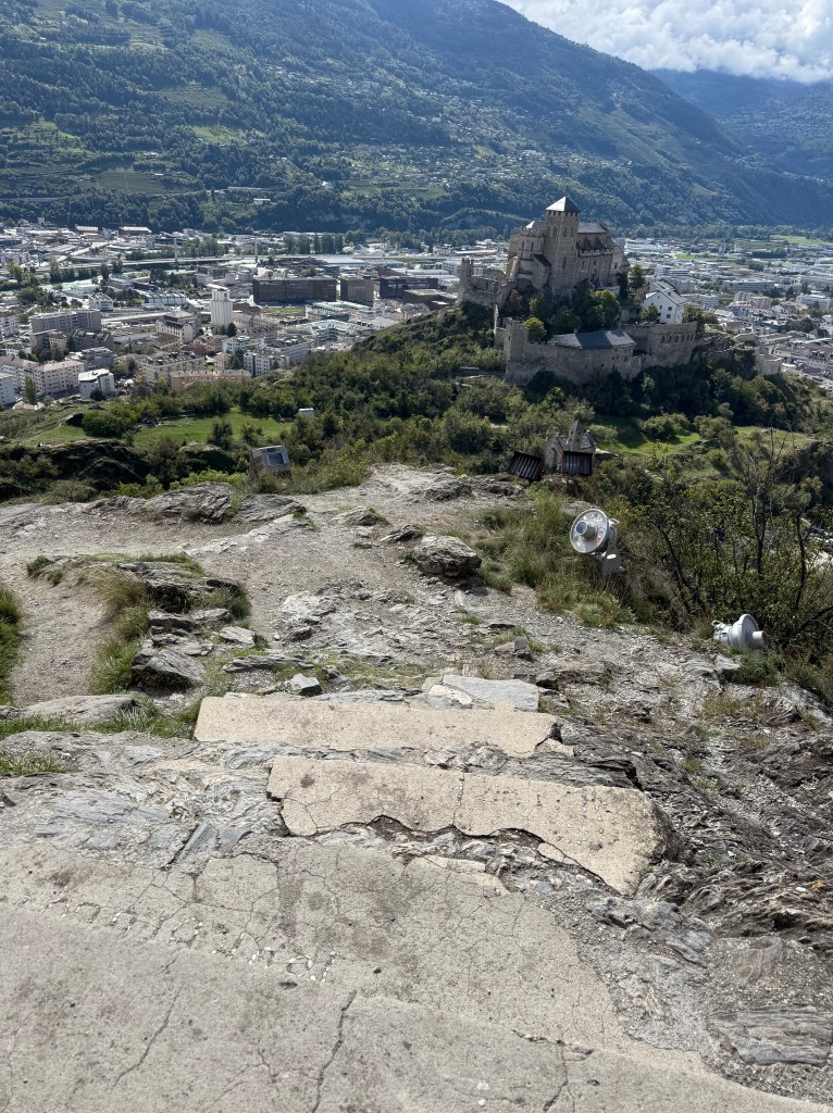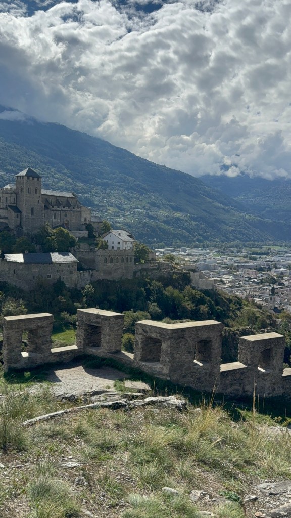 Some random pics as I made my way down the hill from the Tourbillon Castle. The structure you see in a few of the photos is the Valere Basilica or Valere Castle. I do wish I would’ve had time to explore this castle, as well. It is a fortified Roman Catholic Church, meaning it was a church built with defensive features, to serve as a refuge during times of war. The tunnel in the second to last photo is how you access Rue Des Chateau to get to Tourbillon. #castleruins #switzerland #history #sionswitzerland